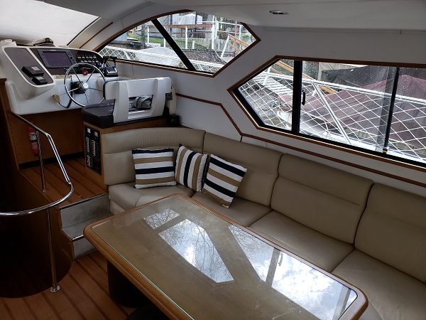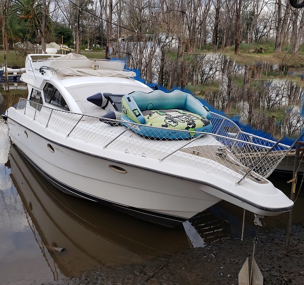 Modelo: Segue 410 Año: 1996 Motor: 2 motores MERCRUISER 270 HP Diesel, 4 tiempos, PATAS BRAVO 2 Año del motor: 1996 Eslora: 12.60 MTS Manga: 3.93 MTS Puntal: 2.27 MTS Calado: 0.90 MTS Revestido interior original en madera Distribucion: 2 camarotes(1 matrimonial en Suite + 1 con 2 camas individuales) y conejera con 2 camas individuales Equipamiento: Grupo electrògeno 6.5Kw. Pluma para moto hasta 400 kg. Aire Acondicionado Inverter Cocina totalmente equipada Iluminacion Led equipo de audio smart tv 47 en el salon tv lcd 24 en habitacion Carpa completa Toldilla Bimini en Fly CAP. COMBUSTIBLE: 1000 lts. TANQUES DE AGUA: 600 lts., Adicional: MOTO DE AGUA SEA DOO RXP255 Embarcacion en muy buen estado, Oportunidad