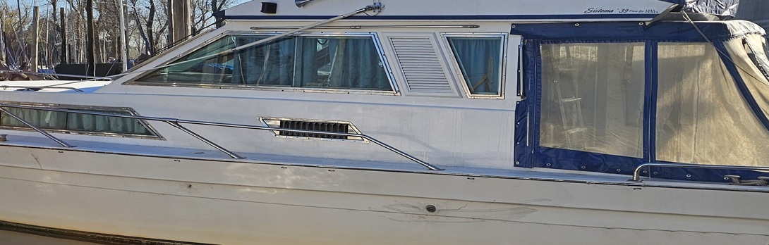 Modelo: Sistema 39 Año: 1983 Astillero: San Isidro Motores: 2 x Volvo Tam 60 - 250 hp (línea de eje/hélice de bronce) Equipamiento y Accesorios: Grupo Onan 3,5 Kva - Calefactor Eberspacher - Malacate Vetus - Microondas - Heladera y freezer - Cerramientos completos - Tv - equipo de música - VHF - Ecosonda estéreo Pionner en fly - Carpa de lona Sumbrella - Vajilla completa (juego de te y copas)