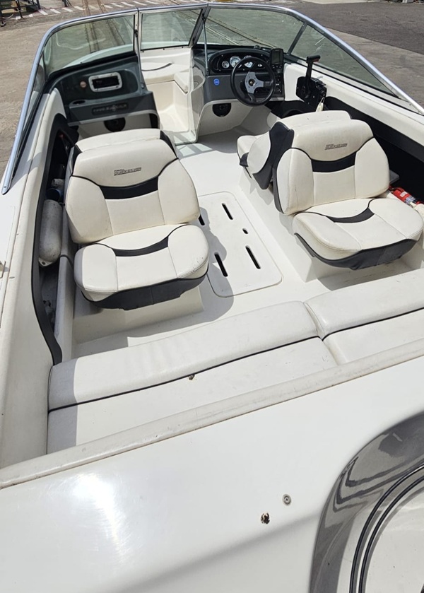 Modelo: QuickSilver 1600 Año: 2009 Eslora: 4,90 Mts Manga: 2,10 Mts Motor: Mercury 75 HP - 2 T - Service Motor y Pata (sept 2025) Equipamiento y Accesorios: Toneau de proa - Escalera en popa - Luz de navegación y Fondeo - 1 bateria (2025) - Llave de corte. Instrumental: Ecosonda Lawrance Stereo y dos parlantes (Pioneer) Capacidad maxima: 6 personas.