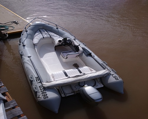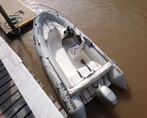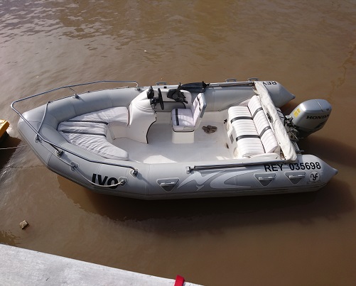 Semirrigido NyC 4.70 mts, Exelente estado de mantenimiento), Motor: Honda 50 HP 4 Tiempos Año: 2002 Equipamiento: Ecosonda con imagen de fondo, Cuenta Revoluciones, Bimini, Compás, Estéreo, Caño para esquí, Parlantes dos.