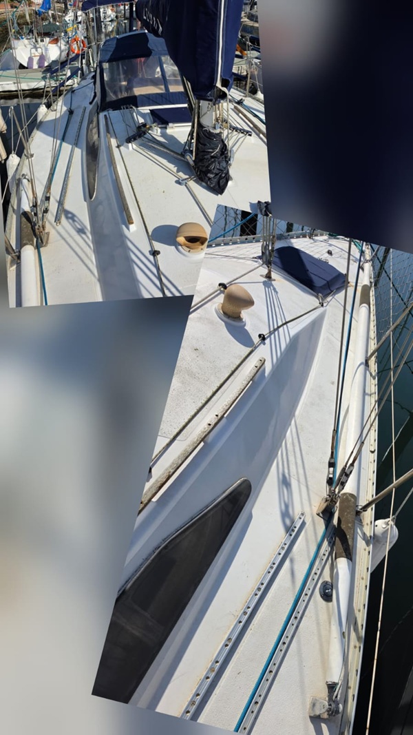 Modelo: Holland 34 CONSTRUCCIÓN: ASTILLEROS DEL ESTUARIO - BOTADO y MATRICULADO JUNIO 2002 (2do Titular) Año: 2002 Eslora: 10,28 Mts Manga: 3,34 Mts Calado: 1,80 Mts Velas: 1 Vela mayor estándar – full batten - muy buen estado (2 manos de rizos) - 1 Vela mayor de dacron pesado – full batten – buen estado (3 manos de rizos) - 1 Genoa Hood 130 % muy buen estado (de enrollar) - 1 Genoa Doyle 125% buen estado, dacron más pesado (de enrollar) - Maniobra completa de spinnaker (Tangón en fibra de carbono - Carro en palo con aparejo y mordazas) Amantillo y contra-amantillo al cockpit - “manitos” para brazas de spi con pastecas removibles, guía y mordazas en ambas bandas - Pastecas removibles para las escotas, escotas de 8 mm - 1 Spinnaker 0.75, perfecto estado - 1 Spinnaker asimétrico liviano, perfecto estado - Aparejo para trimado de estay popel, en dynema, con funda de sunbrella - 2 Manos de rizos en vela mayor, llevados al cockpit - Drizas de Mayor, Guenoa y Spinaker al cockpit - Baby – stay con aparejo, llevado al cockpit - Vang rígido Bohn, con cabo llevado al cockpit - Enrollador de genoa Profurl con stopper en cubierta de popa Motor: MOTOR y HÉLICE Motor YANMAR 2QM15, completamente renovado en 2013 (camisas, pistones, aros, metales, inyectores, bomba de inyección, bomba de agua, ánodos, mangueras y filtros), con repuestos originales YANMAR USA. La caja reductora fue repasada y todos los discos de fricción y sellos reemplazados por nuevos originales USA. Horas actuales: 680.