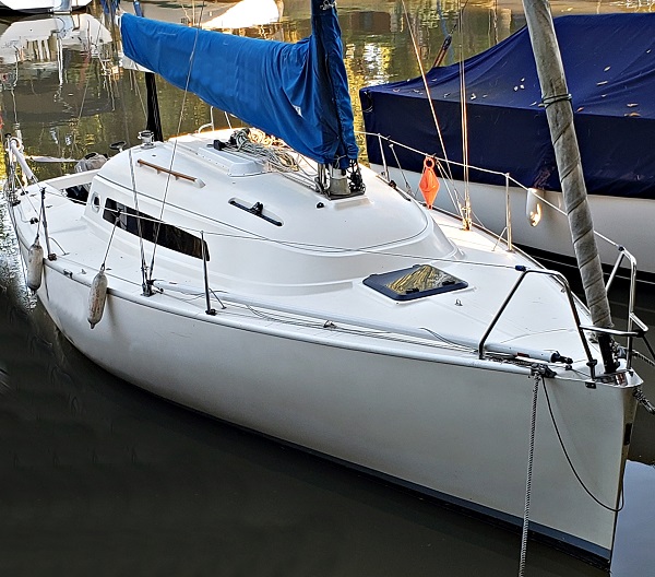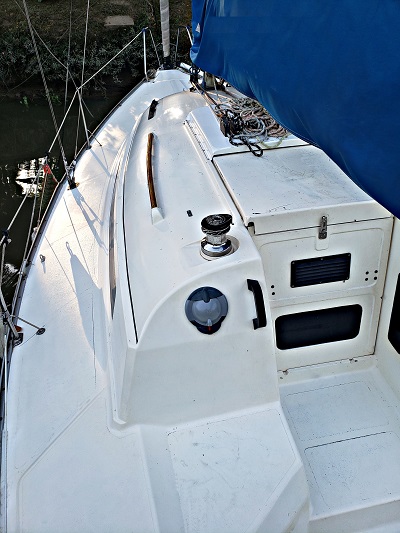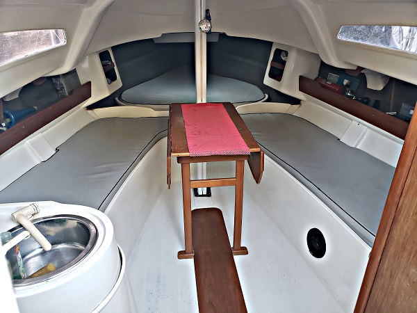 Modelo: Magic 26 Año: 1999 Eslora: 7,88 Mts Manga: 3 Mts Calado: 1,60 Mts Velas: Mayor full battens dacrón UK - Genoa 3 dacrón UK - Genoa 3 tape drive UK - Foque dacrón UK - Spinnaker asimétrico UK - Cubre genoa de enrollar sumbrella Motor: Mercury 15 HP 2T fuera de borda Instrumental/Electronica: Compás Plastimo - Bidata Raymarine ST40 - Stereo pioneer premier 50 W x 4. - 2 parlantes Blaupunkt cuatriaxiales - Tablero eléctrico - VHF Uniden MC535 - Barómetro - Anemómetro usado Navman Wind 3100s (no instalado aún) - 1 batería 12 V 75 amp. Ácido - Piloto automático de caña Navico TP100 - Cargador automático de baterías Hella 12V 10 amp. Maniobra: Tangon, palo (crucetas retrasadas a la banda) botavara Hall Spars de aluminio - Enrollador Harken embutido en cubierta - Tambucho Bomar - Rieles de genoa Harken y patines King - Vang rígido Harken - Motoneria Harken - Dos drizas de spinnaker (una a tope y una al fraccionado) - Stoppers Easylock mini - Mordazas Harken - Dos molinetes Andersen inox. - Traveller y maniobra de mayor Harken - Prolongador de caña de timón Wichard - Popel Harken Equipamiento y Accesorios: Iluminación completa Led - Bolsos portacabos y porta manijas en cockpit - Duchador en cockpit - Escotas de genoa y maniobra de spinnaker simétrico y asimétrico - Cabos de amarre - Escalera de quita y pon para abordar desde el agua - Dos bicheros - Alargue 220v cable taller 20 mts. - Cocina cardanica SD Tomfer con 2 anafes y horno - Garrafa de 3 kg - Conservadora - Circuito de agua potable presurizado con tanque flexible de 120 lts. - Circuito abierto de agua de rio. - Baño compartimentado con bacha, agua potable, duchador e inodoro eléctrico - 6 chalecos reglamentarios - Elementos de seguridad RDLP interior (bengalas y matafuegos vencidos 2022) - Prismáticos Oxbow 7x50 - Carpa completa sumbrella - Cubre mayor Sumbrella Última pintura de fondo 2024 Embarcacion en muy buen estado gral..