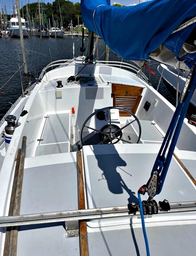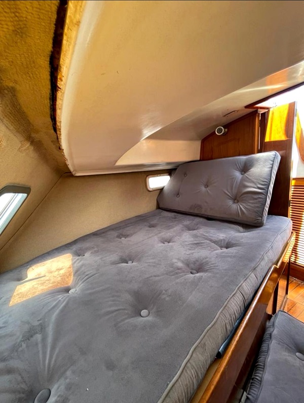 Modelo: Repunte 32 Año: 1988 Material: PRFV Eslora: 9.5 Mts Manga: 3 Mts Calado: 1.2 Mts Velas: Mayor (2023) 2 rizos FOXTROT - Genoa de enrollar HOOD - Spy HOOD - Jarcia nueva 2023 (BOHN) - Tensores BLUE WAVE ( Dinamarca) - Enrrollador BOHN - Palo BOHN Motor: VOLVO PENTA 28 HP - Diesel - Transmision con Línea de eje Equipamiento y Accesorios: Tanque de Combustible en Acero Inoxidable de 70 L - Tanques de Agua 60 L - Cabina de proa con cama para 4 personas - se convierte en comedor - Cocina cardanica dos hornallas y horno - Bacha y Monocomando - Heladera a compresor capacidad 30 litros - Baño compartimentado con inodoro eléctrico TMC y bacha - Colchonetas en pana lavable - Revestimiento en piso y paredes PVC - Compartimientos de guarda Cabina de popa con cama matrimonial - Mesa de capitán - Baño compartimentado con inodoro eléctrico TMC y bacha Instrumental y Maniobra: VHF- Compas - Ecosonda (anemómetro y corredera B & G) - Molinetes con self 23 ‘’ (ALDO) - Stoppers LEWMAR - Motoneria HARKEN - 2 Baterías - Corta corriente - Timón de rueda - Dos fondeos - Luces de navegación inalámbricas con control remoto - iluminación led